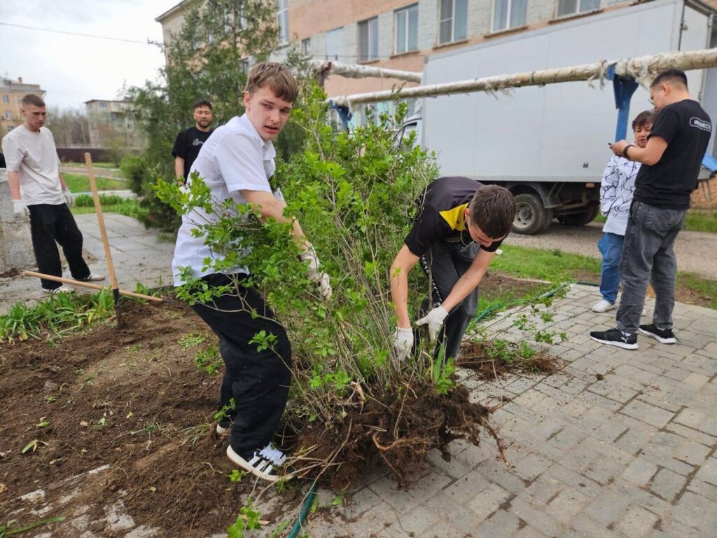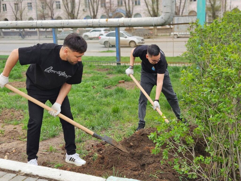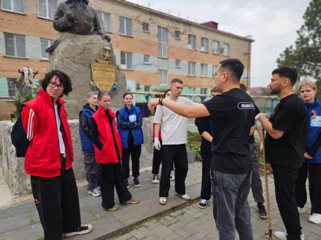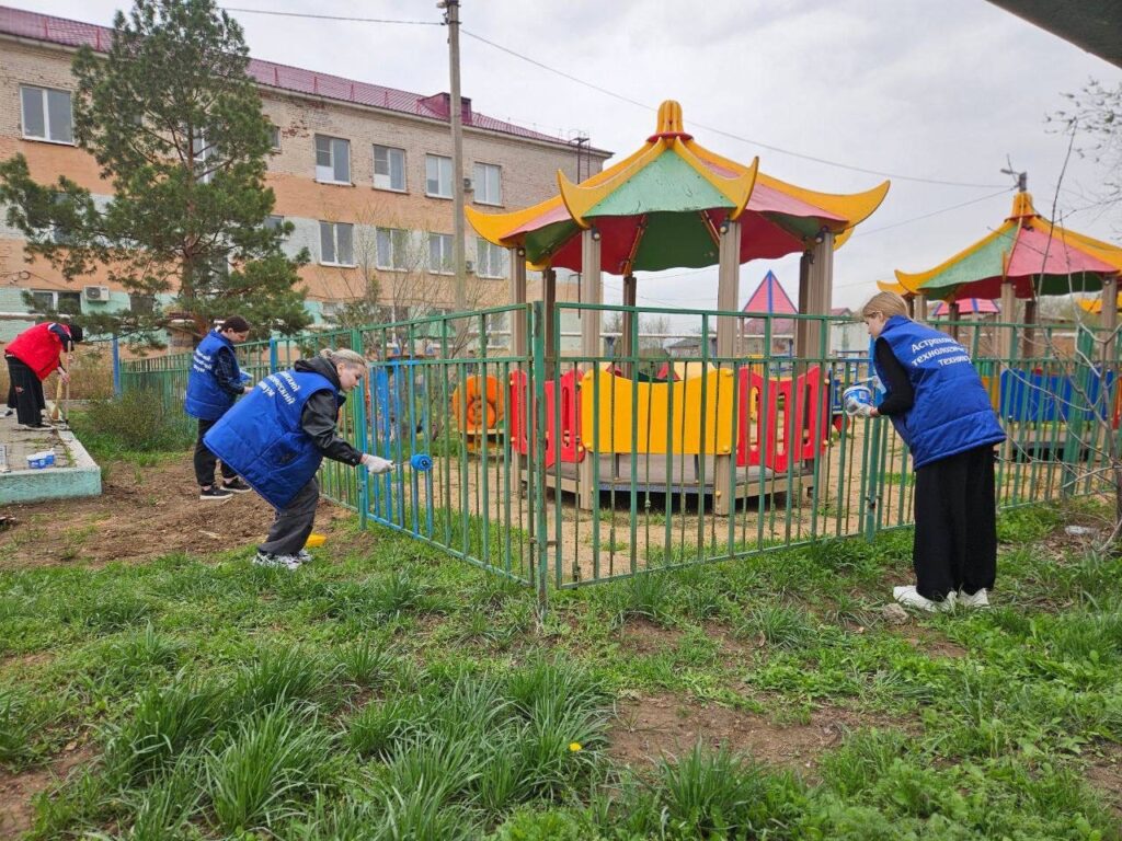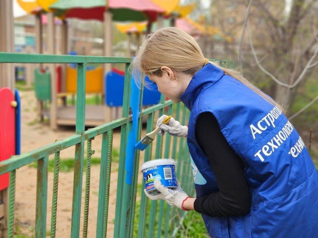 Команда «Союза добровольцев России» и студенты Астраханского технологического техникума посадили цветы, озеленили территорию памятника Степан Здоровцева — Героя Советского союза, покрасили бордюры и заборы, что сделало школьный двор более красивым и уютным.